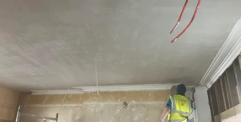 Scales undertook the restoration of a 160-year-old Victorian house, using traditional lath and plaster techniques. The ceilings and walls were lime-plastered, while the first-floor walls featured blue clay plaster for an earthy aesthetic. The building’s external render was replaced with lime render, and its decorative features were meticulously repaired. Main Contractor: Sullivan Brothers Construction